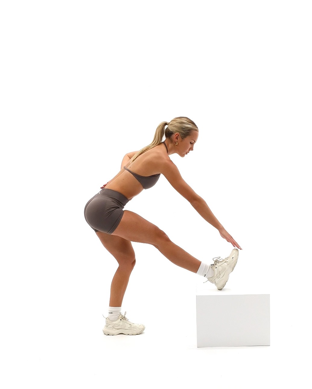 The Supported Hamstring Stretch targets the hamstrings while providing support from a bench, making it easier to maintain proper form and deepen the stretch safely. This stretch helps improve hamstring flexibility, reduce muscle tightness, and enhance lower body mobility How to Perform - Stand facing a bench or sturdy surface - Place one heel on the bench with your leg straight and toes pointing up - Keep your hips square and back flat - Slowly hinge forward at the hips, reaching toward your toes while keeping your spine long - Hold and repeat to other side