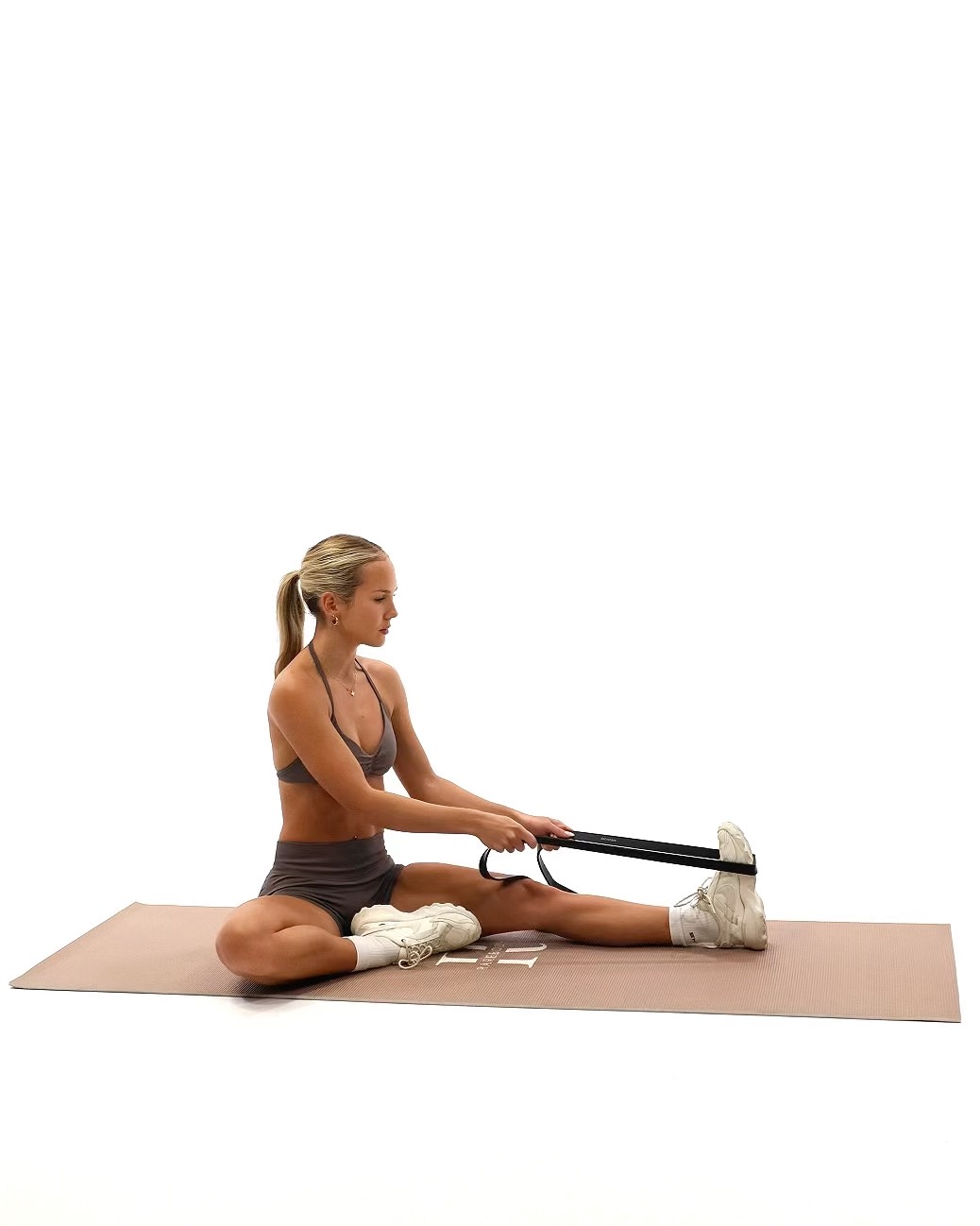 The Seated Single-Leg Resistance Band Hamstring Stretch uses a band to gently pull the extended leg, improving hamstring flexibility and mobility How to Perform - Sit on the floor with one leg extended and the other bent - Loop a resistance band around the ball of the extended foot and hold the ends - Keep your back straight and gently pull the band to bring your foot toward you, feeling a stretch in the hamstring and hold