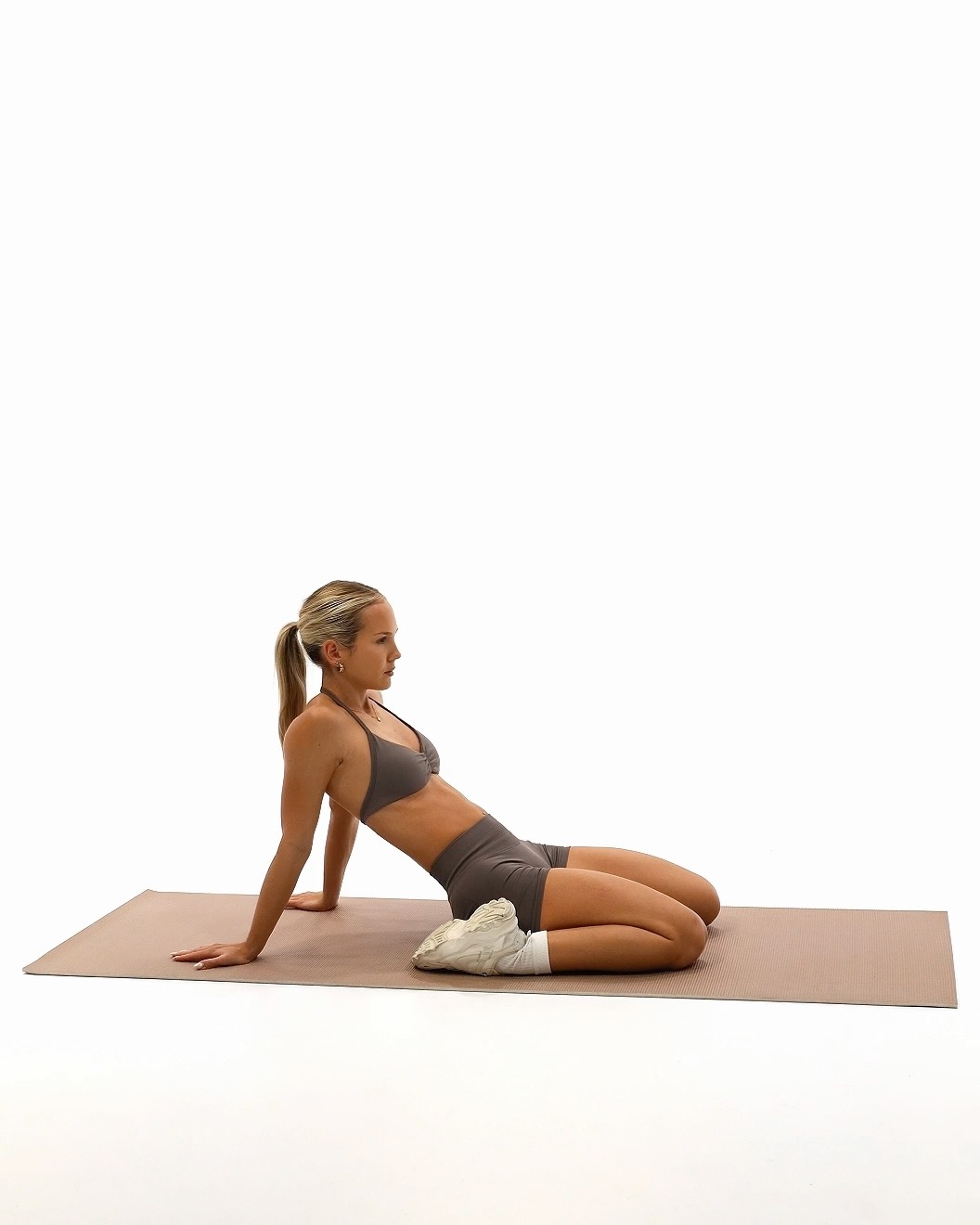The Seated Double Leg Quad Stretch targets the quads by stretching both front thigh muscles simultaneously while seated. This stretch helps improve knee flexibility, reduces muscle tightness, and enhances overall lower-body mobility How to Perform - Sit on the floor with your legs bent behind you, knees pointing back and tops of your feet resting on the ground - Keep your back straight and engage your core - If comfortable, gently lean back onto your hands for support - Hold the position, feeling the stretch along the front of both thigh