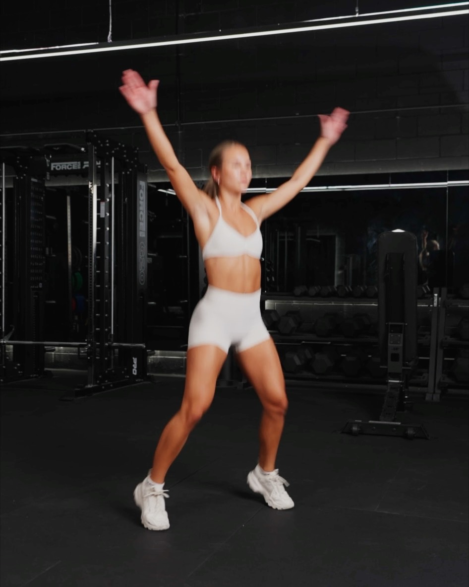 Setup - Start by standing with your feet together and your posture upright, with your arms by your sides Movement - From starting position, jump explosively up, spreading your legs out wide and raising your arms overhead - Land softly with your knees slightly bent to absorb the impact. Try and land in the same position as you started