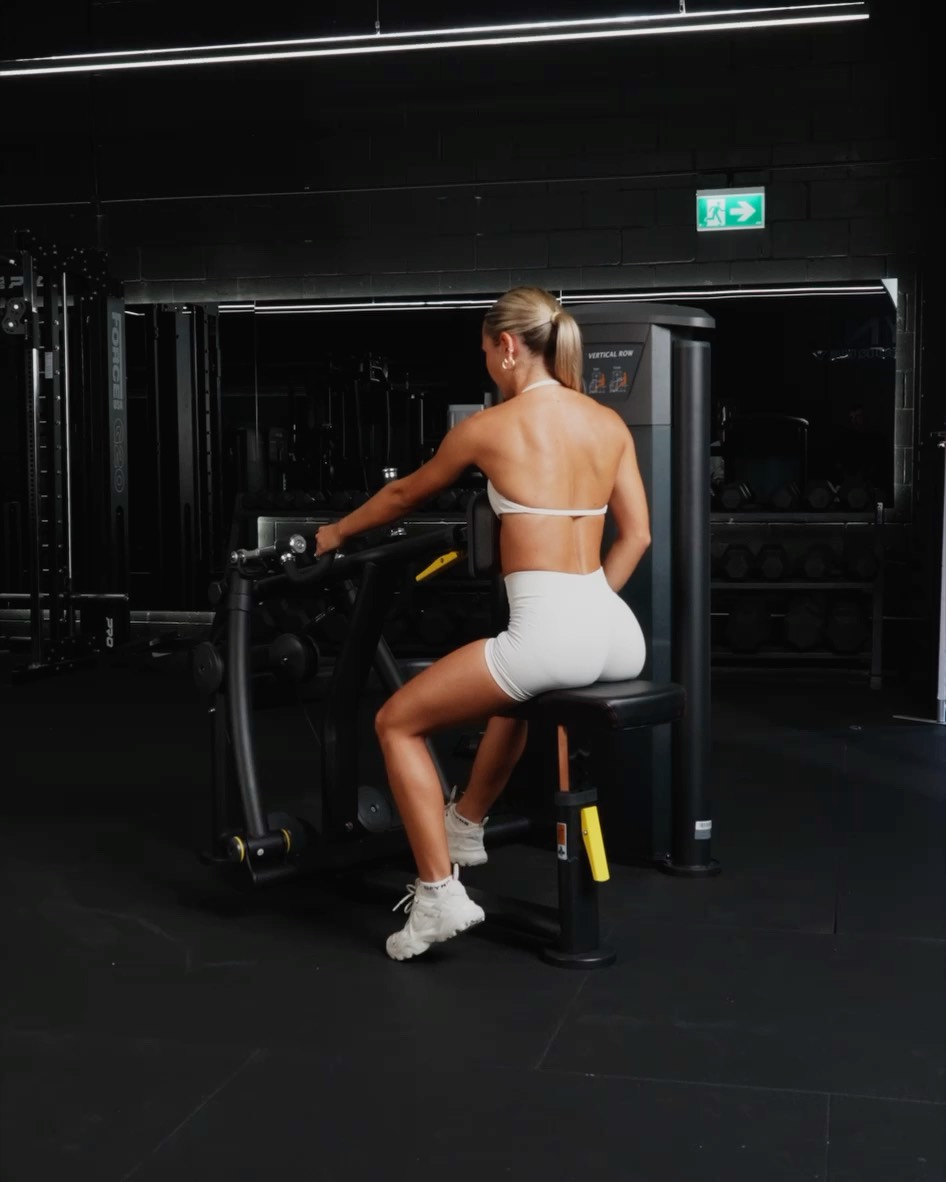 Setup - Sit at a rowing machine with a neutral spine and feet firmly planted - Adjust the seat and chest pad so that your working arm can fully extend without losing contact with the pad - Grab the handle with one hand, keeping your shoulder relaxed and core engaged Movement - Pull the handle toward your side by driving your elbow back, keeping it close to your body - Squeeze your shoulder blade at the peak of the movement - Slowly extend your arm back to the start, maintaining control and keeping tension in your back