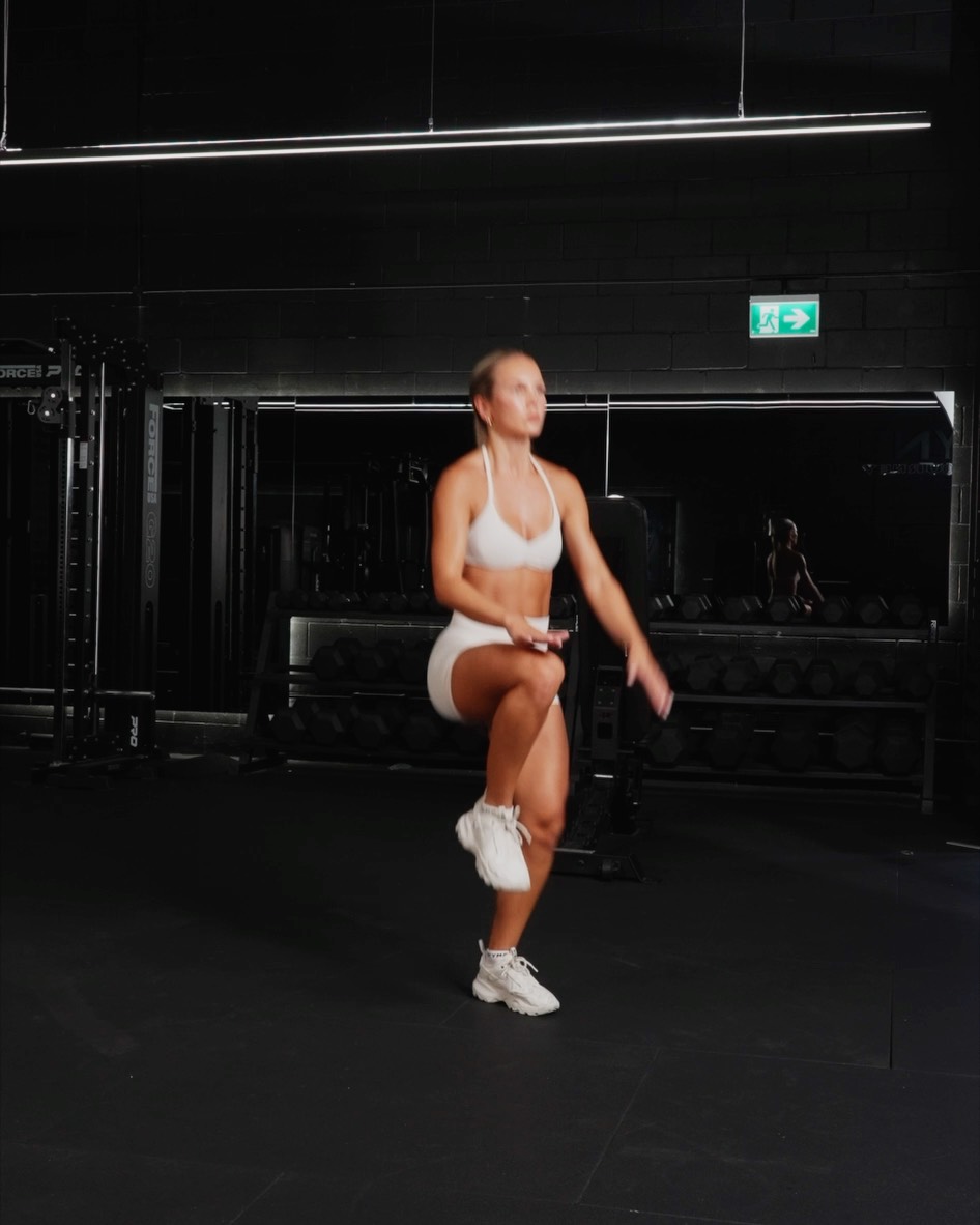 Setup - Stand tall with your feet about hip width apart - Place your arms at a 90 degree angle in front of you to help with balance Movement - Lift your right knee as high as you can, aiming to bring it up to hip height. As your right knee comes up use your right hand as a target to slightly hit as your leg pumps upward. Do the same with your left - Alternate legs at a fast pace