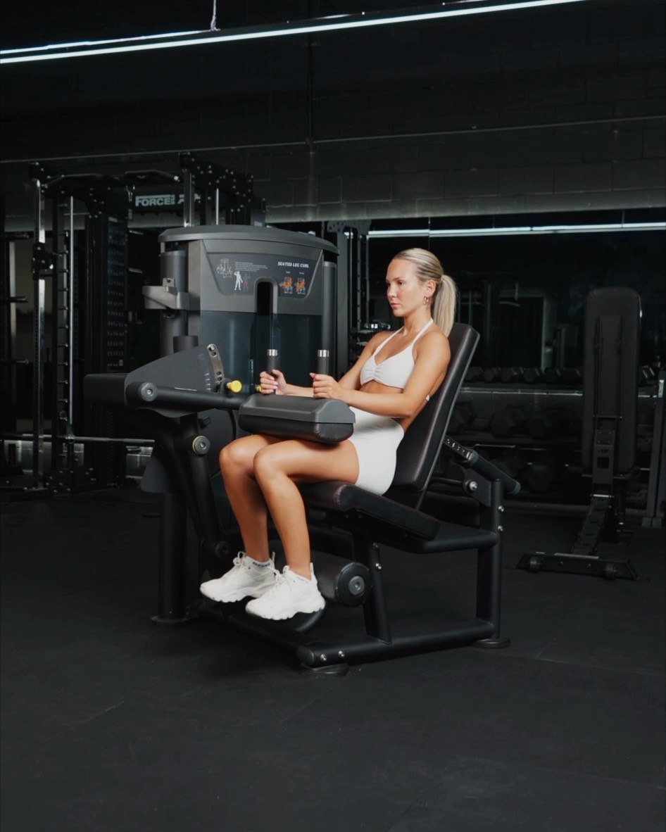 Setup - Adjust machine so your back is flat on the backrest. Make sure your knees align with the pivot point on the machine. Your knees should be slightly off the edge of the seat when you begin - Position the padded lever so that it rests on the lower part of your legs Movement - Engage your hamstrings and slowly curl your legs downwards so that your heels are level with the bottom of the machine - Slowly extend your legs back to the starting position by straightening your legs